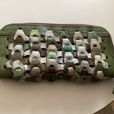 Fin lille pung fra Octopus, lavet af restlæder og med lynlås lomme og større rum. Lukkes med lynlås. Længde: 15 cm. Højde 11 cm. Der kan være en kortholder i pungen. Se alle fotos. Obs: kortholder medfølger ikke.