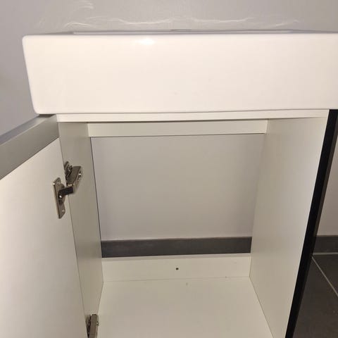 Porcelænsvask plus skab. Passer sammen. Begge dele kan købes for 50kr