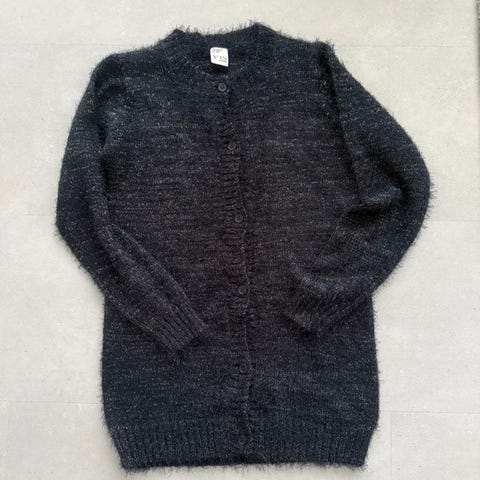 Skøn blød cardigan med lynlås og hætte. Velouragtigt materiale.