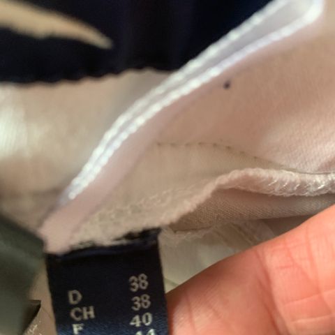 Stævnebluse fra Horze, hvid med blå kant ved ærmer og mærke på hø arm. Lille i størrelse. Brugt, men i god stand.