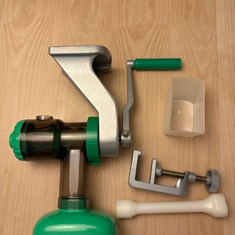 Saftpresseren er kompakt og har en finish i stål. Den kan nemt skilles ad for at lette rengøringen.