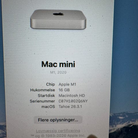 Sælger min M1 Mac Mini i meget fin stand — ingen ridser eller brugsspor. Kører lydløst og er lynhurtig fra start. 512GB SSD giver rigelig plads, og 8GB unified memory håndterer multitasking uden problemer. Perfekt til studerende, kreative eller alle der vil have en kraftfuld og kompakt Mac til en god pris.
