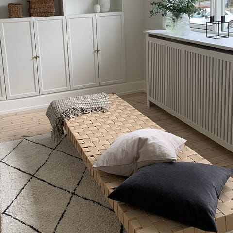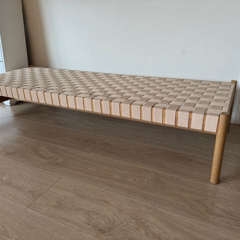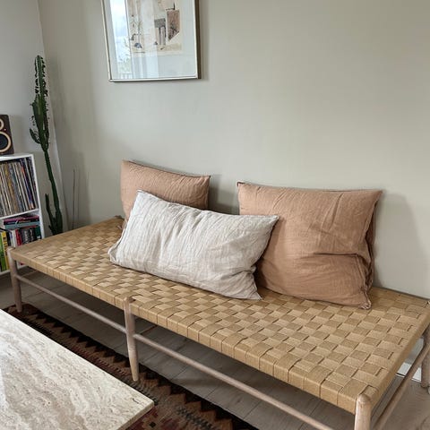 Super fin daybed i eg. Den har dog et falmet mærke i den ene ende, da der har ligget en pude. Læg evt et tæppe eller en pude, så er den så fin.