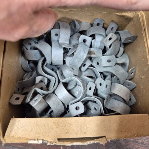 Til fæstning af kabler, ledningsklemme 1 lap. 10mm. 50stk. 50kr. Jeg har et sæt i mat sølvfarvet og et sæt i messingfarvet.