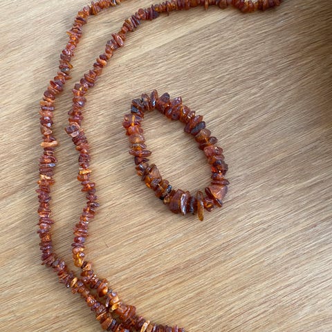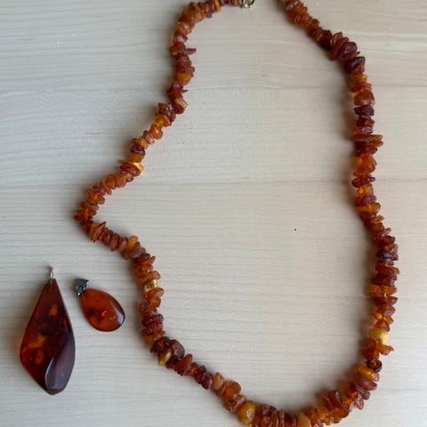 Rav vedhæng halskæde læder bøjle med 2stk rav