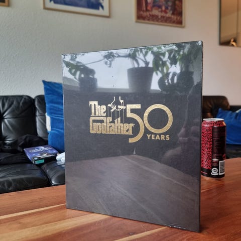 Superflot boks med alle tre film på Blu-Ray, 4 timers bonus materiale, trykt manuskript med håndskrevne noter, billeder fra settet, Corleone stamtræ plakat. Blu-Rays er aldrig brugt i ubrudt plastik.