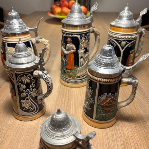 3 stk. antikke ølkrus, Tin, 1800 år gl.