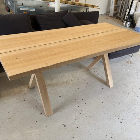 Næsten færdige planker i ask til spisebord. Vælg selv at lave det sidste eller få os til det.
