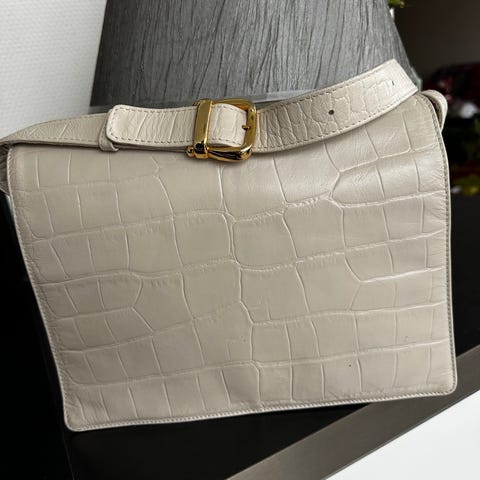 Crossbody, Bocxa, Vintage taske i kernelæder cognacfarvet, virkelig lækker men ret slidt - 4 små huller i bunden, som nok kan fikses. Se sidste billede. Men praktisk med 2 lånlyslommer, som er intakte.