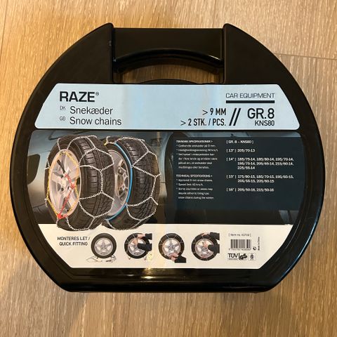 2 stk GS/TÜV og Ö Norm V5117 / EN16662-1 godkendte snekæder på 9 mm. Leveres i kraftig opbevaringsbox. Købt i T-hansen, aldrig brugt, kommer i original indpakning. Ny pris 299,-