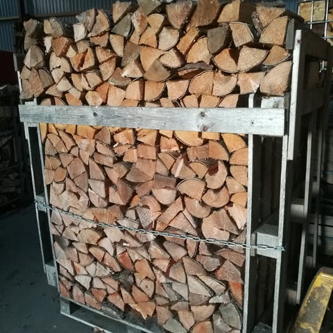Ca. 5 kubikmeter brænde klar til afbrænding og ca. 25 - 30 cm . Prisen per kubikmeter er 500 kr.