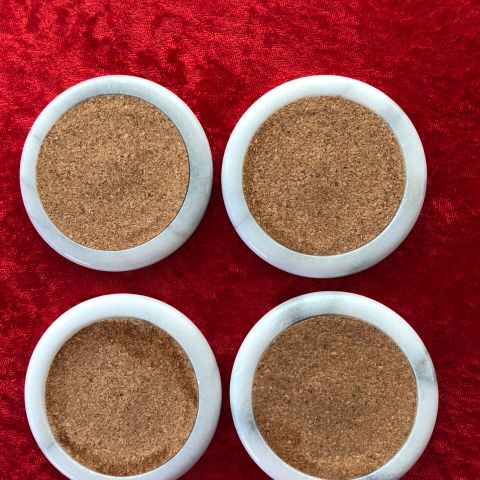 Bordskånere marmor 1 stor og 4 glasbrikker