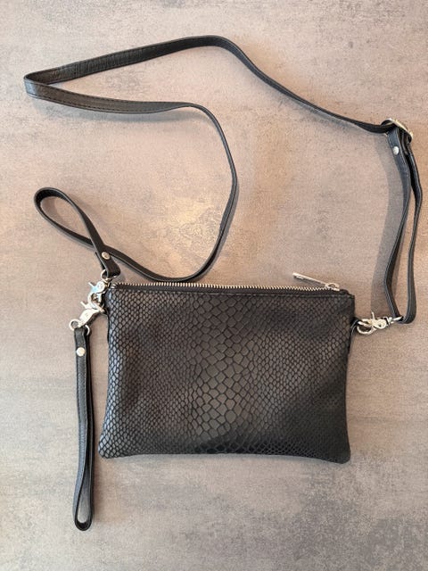 En clutch er en vigtig accessory til festtøj. Tjek DBA's 1.898 annonce(r) og se, om du kan finde den perfekte clutch. Små tasker til fest og aftenbrug har ofte en aftagelig strop. Du kan derfor vælge, om du vil bære tasken som en skuldertaske eller holde den i hånden uden stroppen. Et helt nyt sæt med tøj, sko og taske kan være en dyrt – tjek derfor, om du kan finde en flot clutch brugt.