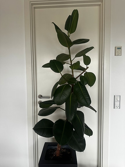 Stor, flot grøn plante i sort krukke