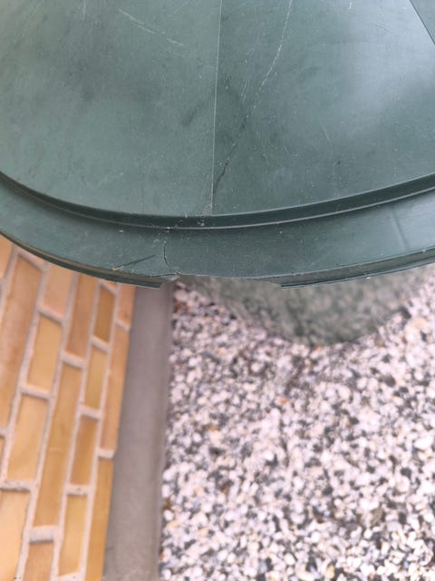 Havebord med glasplade gives væk