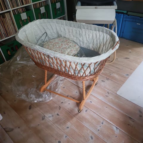 Antik vugge med nyere meder