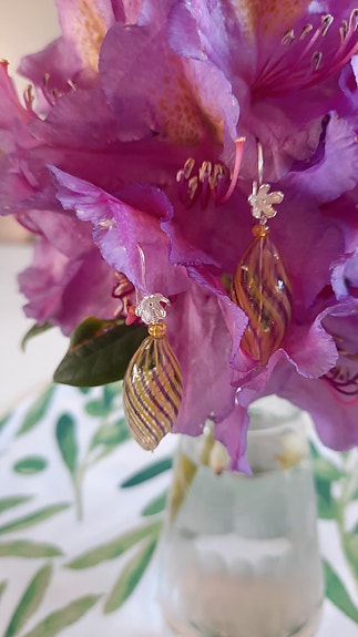 Elegante ørehængere i Sterling Sølv 925 & rav: aldrig brugt. Leveres i gaveæske