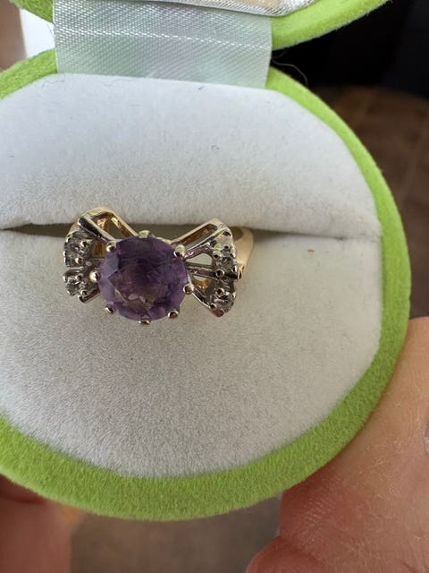 Guld ring med diamanter og amatyst