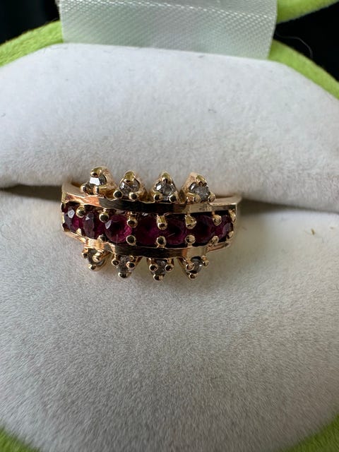 Guld ring med diamanter og rubiner
