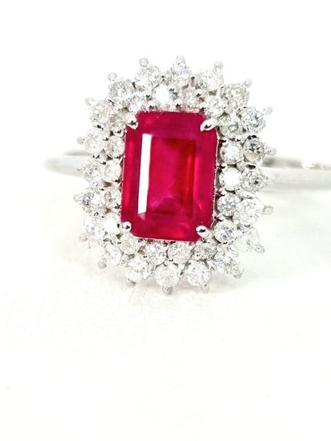 Ring - 18 kraat Hvidguld Rubin - Diamant