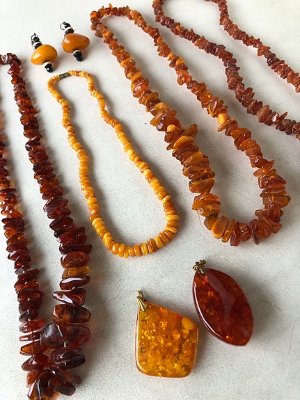 Smykker og sten af blå natur rav