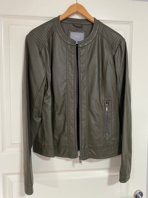 Grøn læder jakke.
