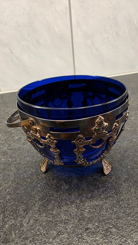 Sukkerskål m/ blåt glas