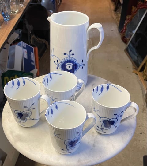 Royal copenhagen kande og 4 krus.