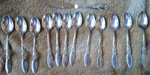 7 stk. Teskeer med Bynavne