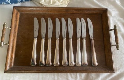 Dobbeltriflede knive i sølvplet