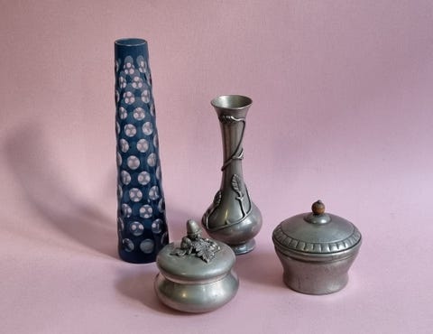 Glasvase og tin lågkrukke