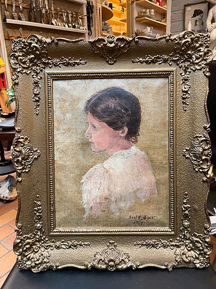 Maleri, signeret, flot ramme