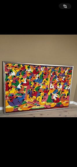 Farverigt figurativt maleri i ramme