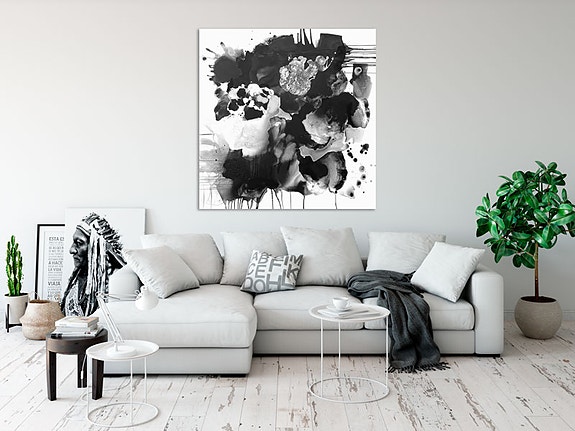 Abstrakt sort/hvid vægkunst maleri