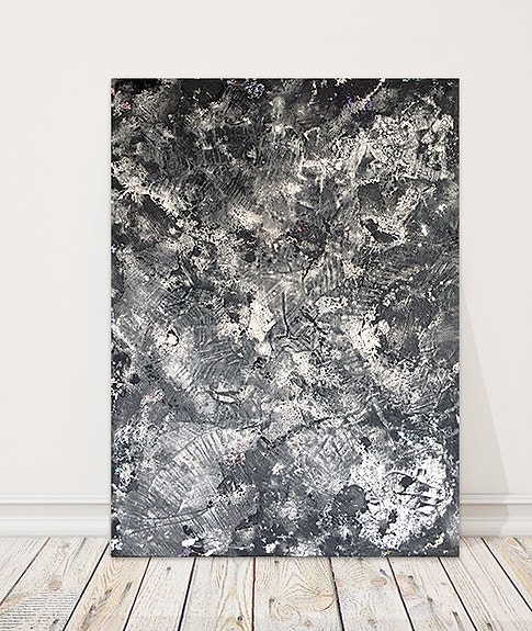 Abstrakt maleri lærred grå og sort