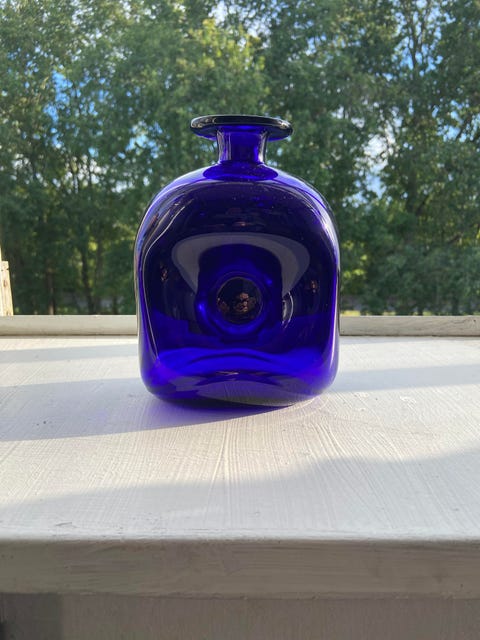 Blå Holmegaard vase af Otto Bauer