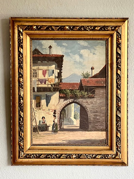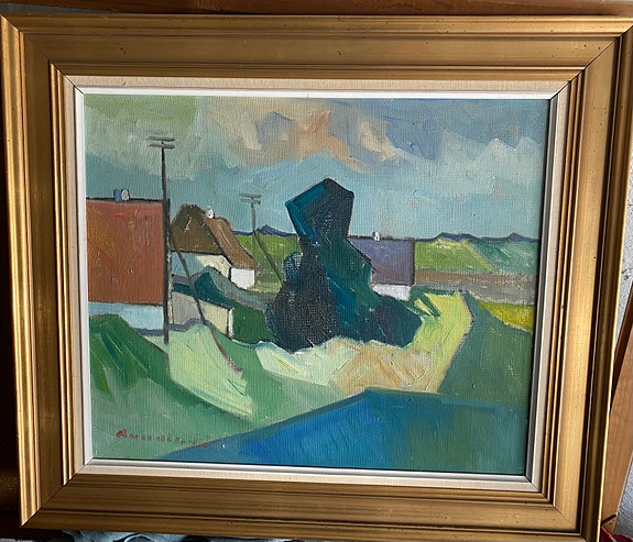 Oliemaleri af K.Bøstrup i guldramme.