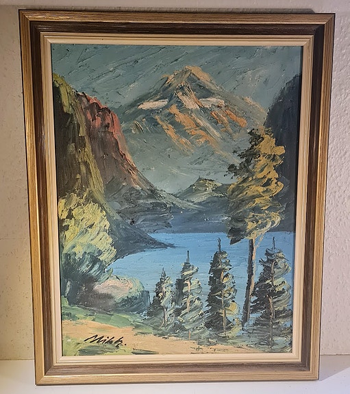 Oliemaleri af bjerglandskab