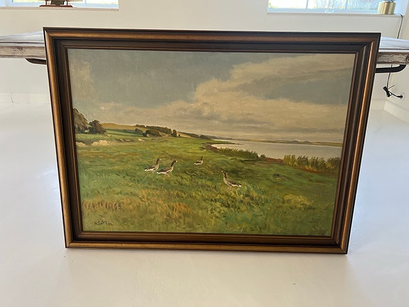 Ole Due maleri landskab i guldramme