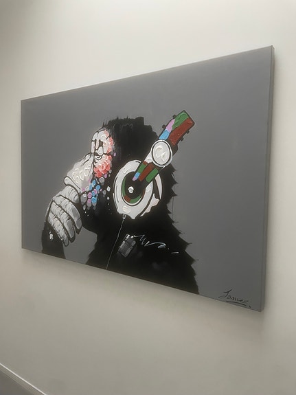 Maleri af abe med hovedtelefoner