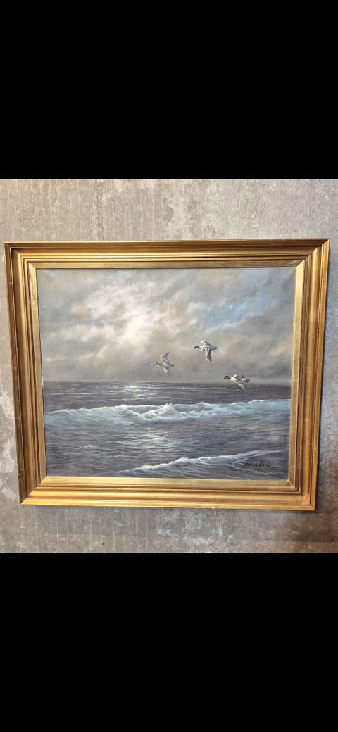 Maleri, sign. Havparti med fugle