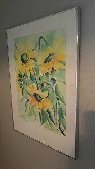 Maleri med blomster i kurv