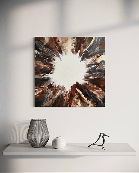 Abstrakt maleri brun og hvid