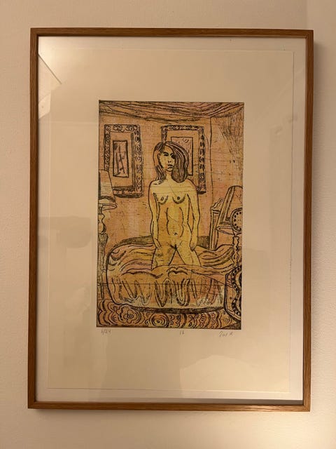 Tal R litografi, prof. inddrammet