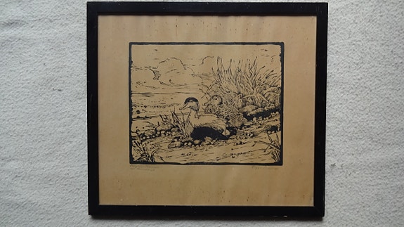 Johannes Larsen træsnit af sneppe