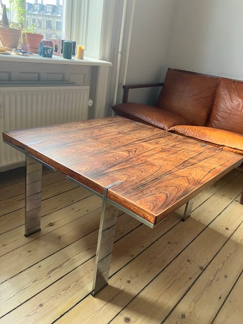 Sofabord i træ og chrome