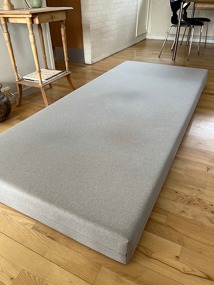 Skummadras betrukket med gråt stof