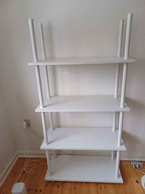 Hvid reol med fire hylder