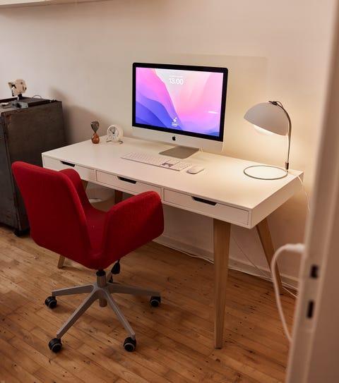 Hvidt skrivebord med skuffer