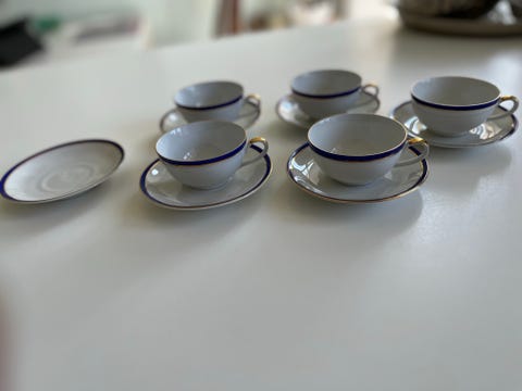 Royal Copenhagen Blå Mega Riflet kaffekopper med underkopper porcelæn hvid blå